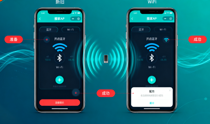2. 连接同一Wi-Fi,旧手机选择“发送”,新手机或电脑选择“接收”;